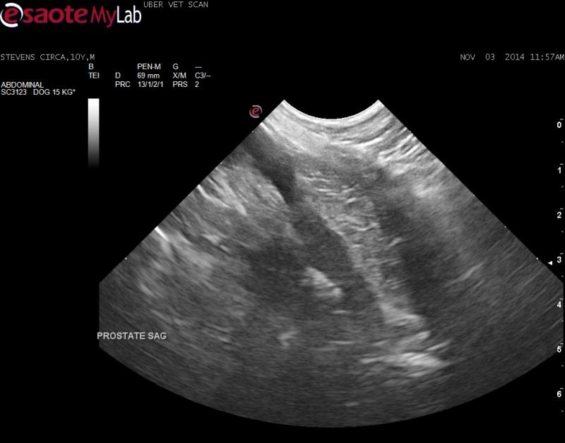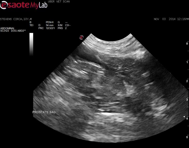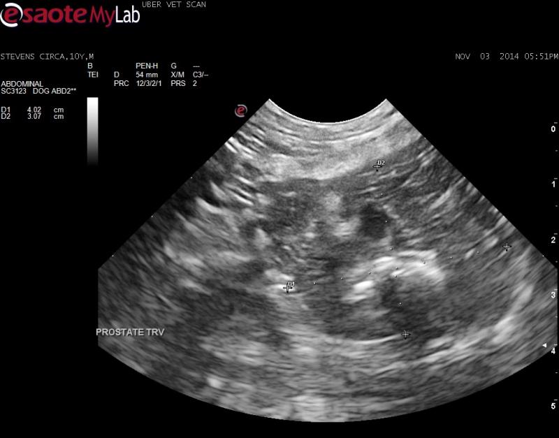 – mineralized lesion seen in prostate therefore concern of neoplasia as pet is neutered