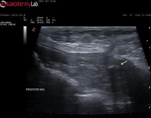 In the video and the urethra and residual prostate I see normal regression and normal urethra. The mineralization and focal hyperechoic change is in the pelvic fat. I don’t see anything here that is causing the weight loss.